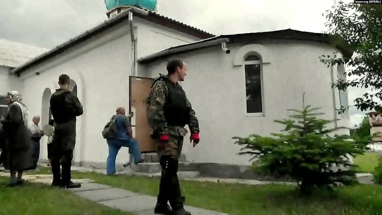 1 июня, 8 утра – группа вооруженных людей выбила дверь и ворвалась в храм УПЦ Киевского патриархата, расположенный у КПП воинской части в селе Перевальное.