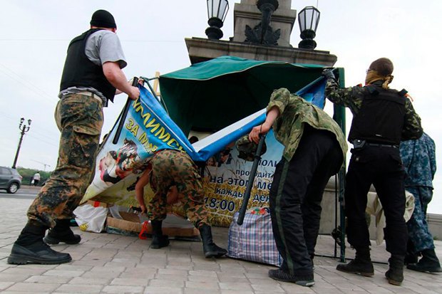 Була спроба знайти допомогу в мера Донецька Олександра Лук'янченка, який, попри ситуацію, продовжував безперешкодно обіймати цю посаду. Ми скористались можливістю побачитись з ним після брифінгу, який він давав в міськраді щодо поточної ситуації в місті. В будівлі ходили озброєні бойовики, разом з тим абсолютно спокійно працювали чиновники, і мер в тому числі.